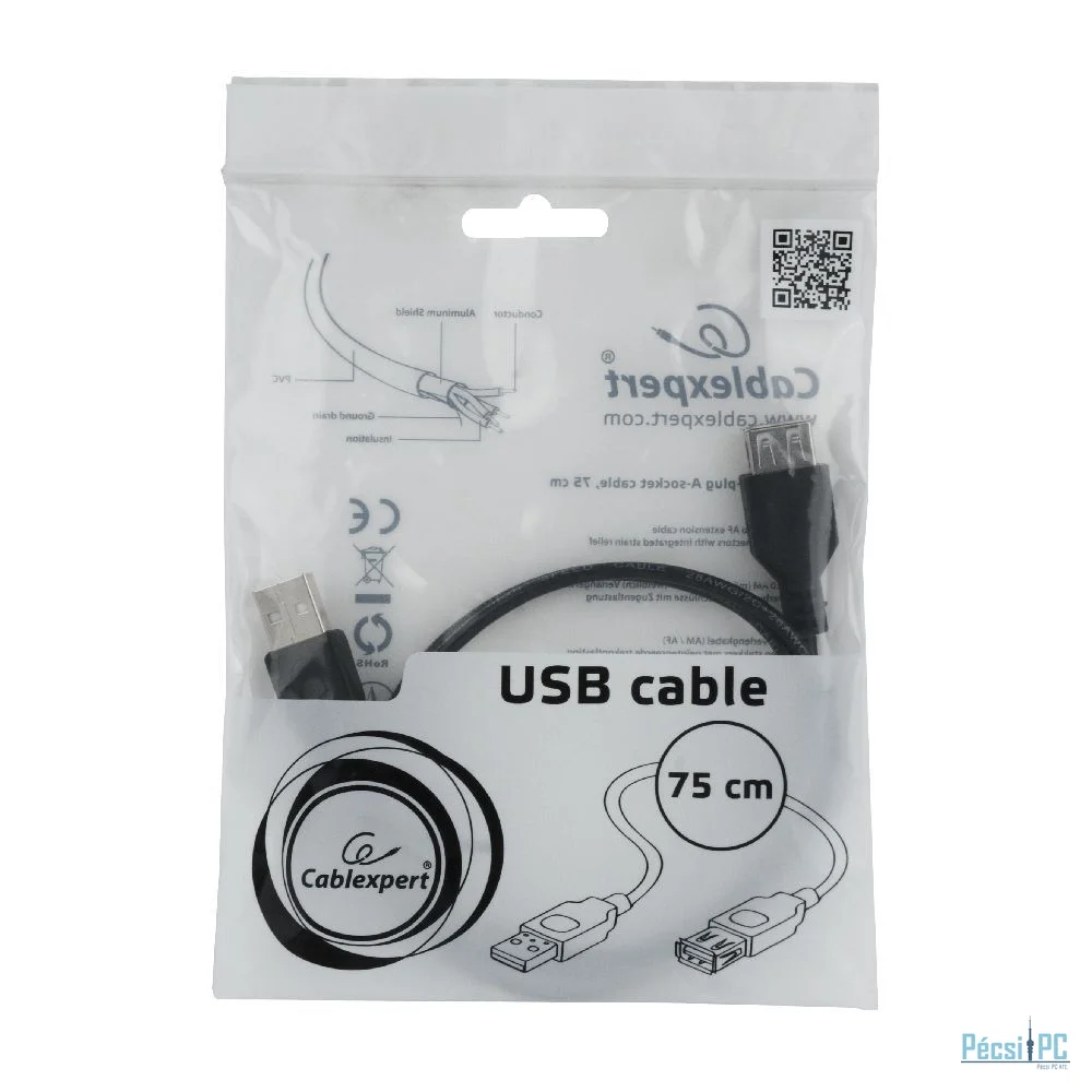 Gembird CC-USB2-AMAF-75CM/300-BK USB2.0 extension cable 0,75m Black