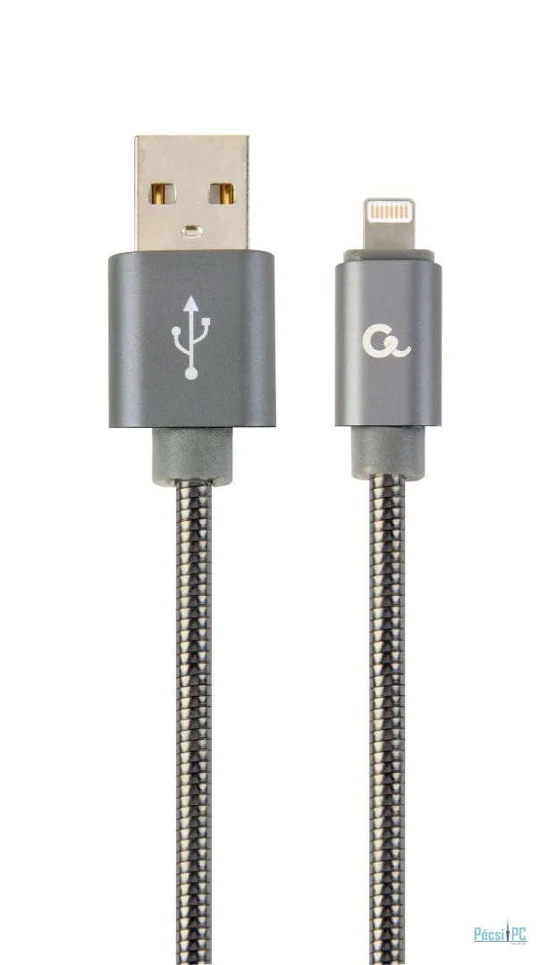 Gembird CC-USB2S-AMLM-1M-BG Lightning Premium spiral metal 8-pin charging and data cable 1m Metallic Grey