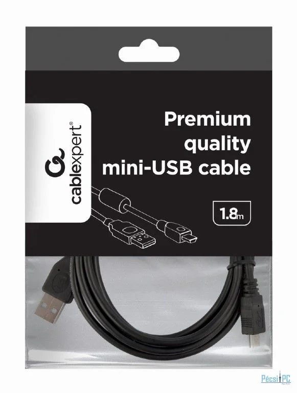 Gembird CCF-USB2-AM5P-6 USB 2.0 A- MINI 5PM cable with ferrite core 1,8m Black