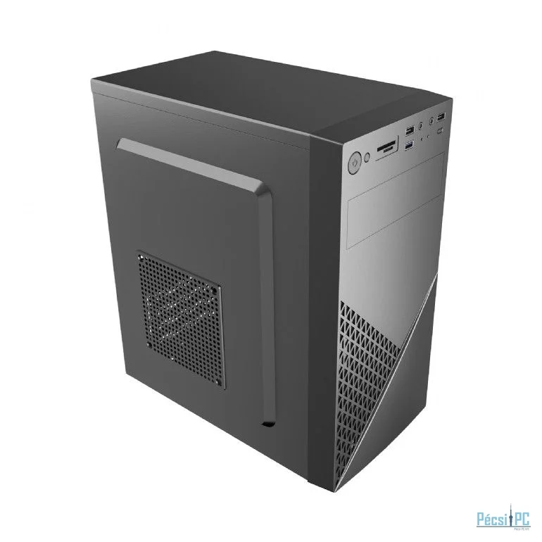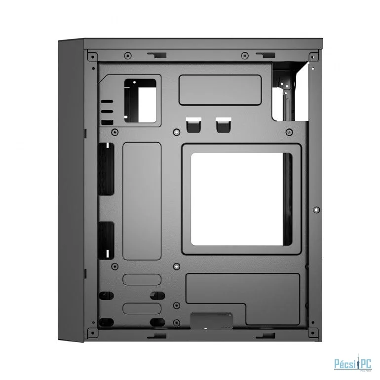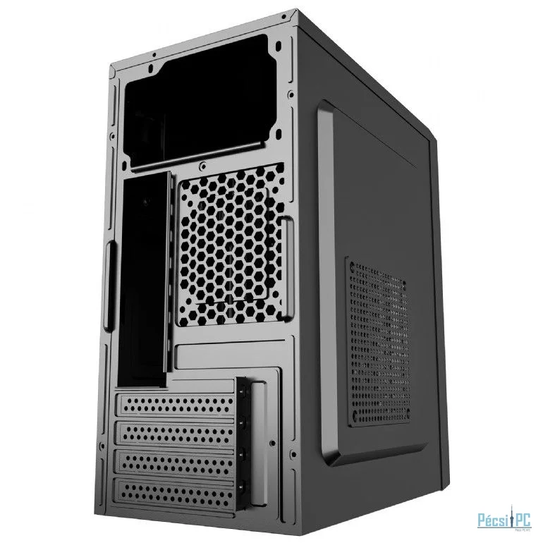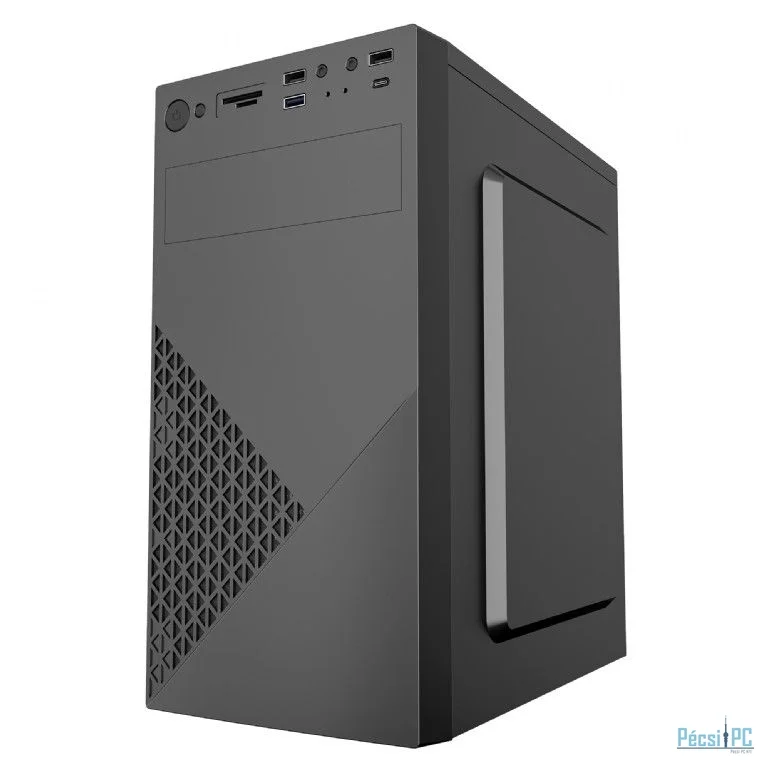 microATX, Black, 1x5,25", 1x3,5", 3x2,5", 2xUSB2.0, 1xUSB3.0, 1xUSB Type-C, Audio, Táp nélkül, 427x370x173mm