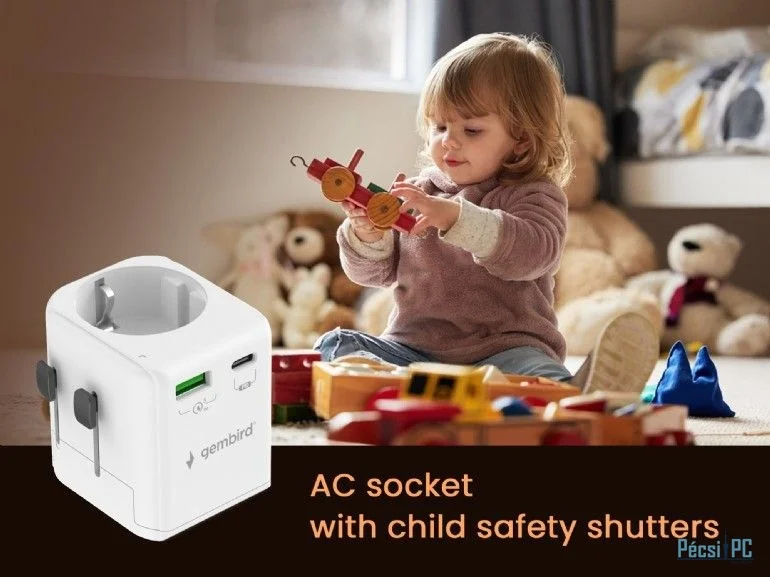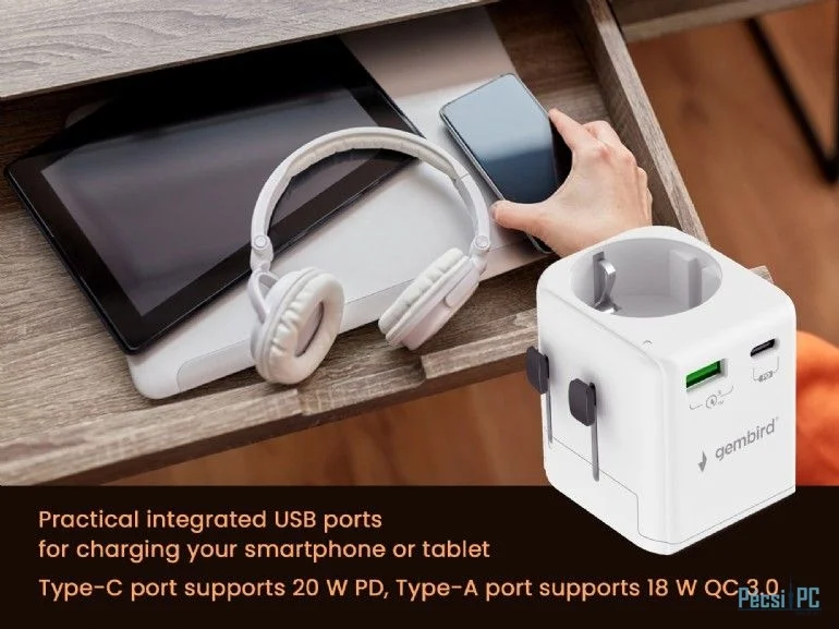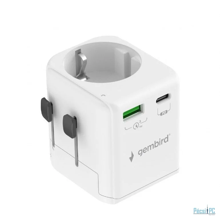 Gembird Grounded universal travel power adapter 20W White