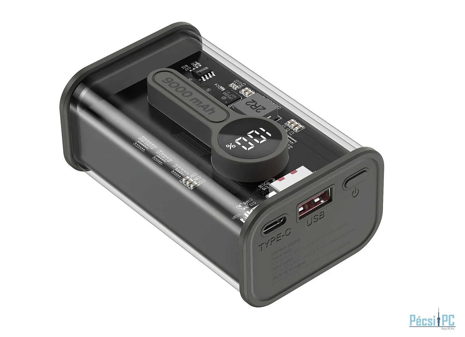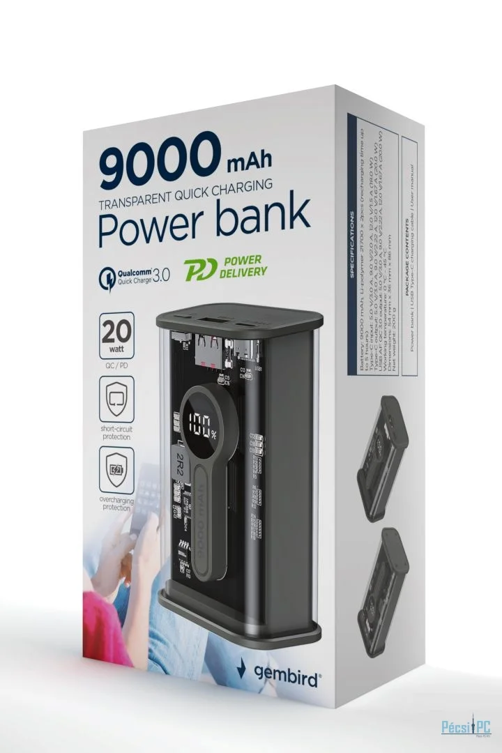 Gembird Transparent QC3.0 Quick Charging 9000mAh Powerbank Black
