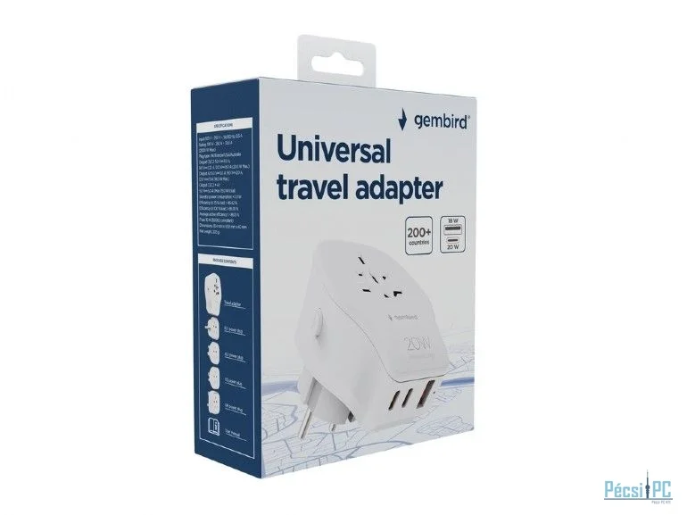 Gembird Universal travel power adapter 20W White