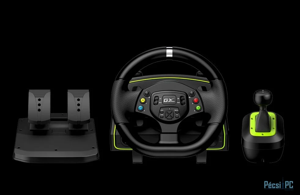Kormány/pedál szett, PC/PS3/PS4/XBOX 360/XBOX ONE, USB, Sebességváltó modul, Két pedálos, Vibrációs funkció, Force feedback, Gamer