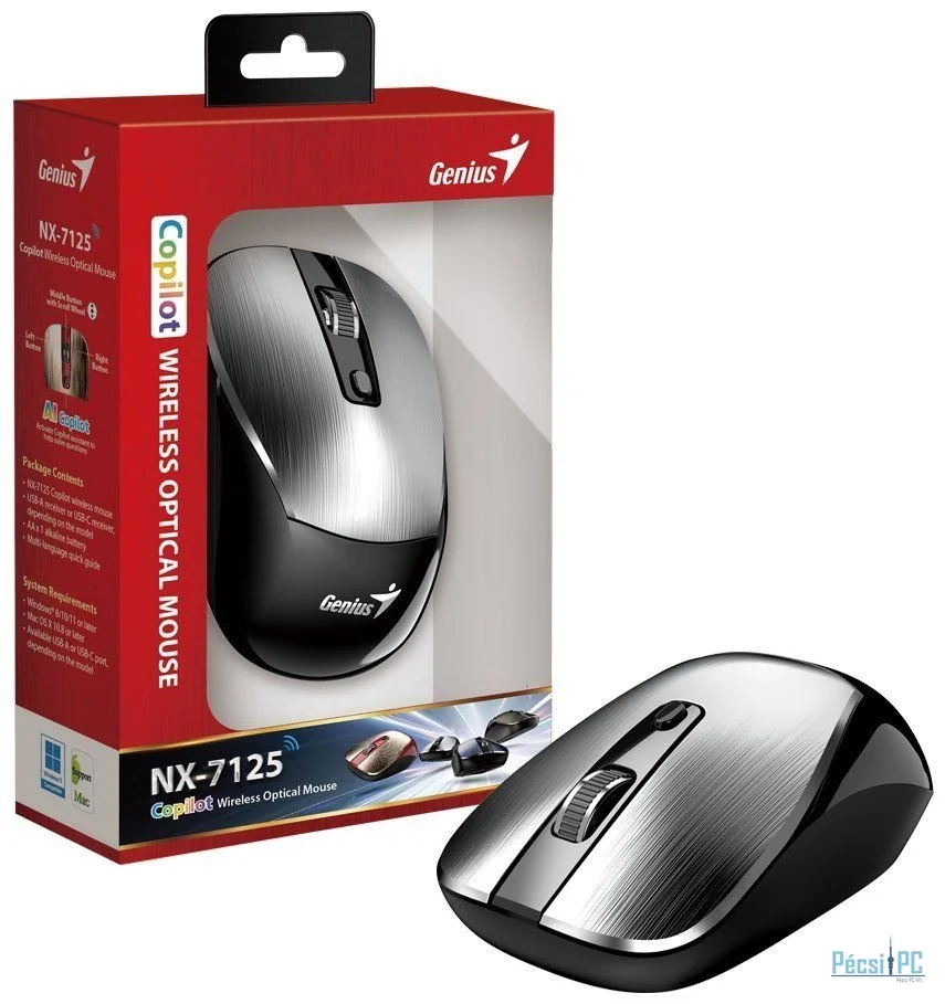 Vezeték nélküli, Wireless 2,4GHz, Optikai, 1200DPI, silver