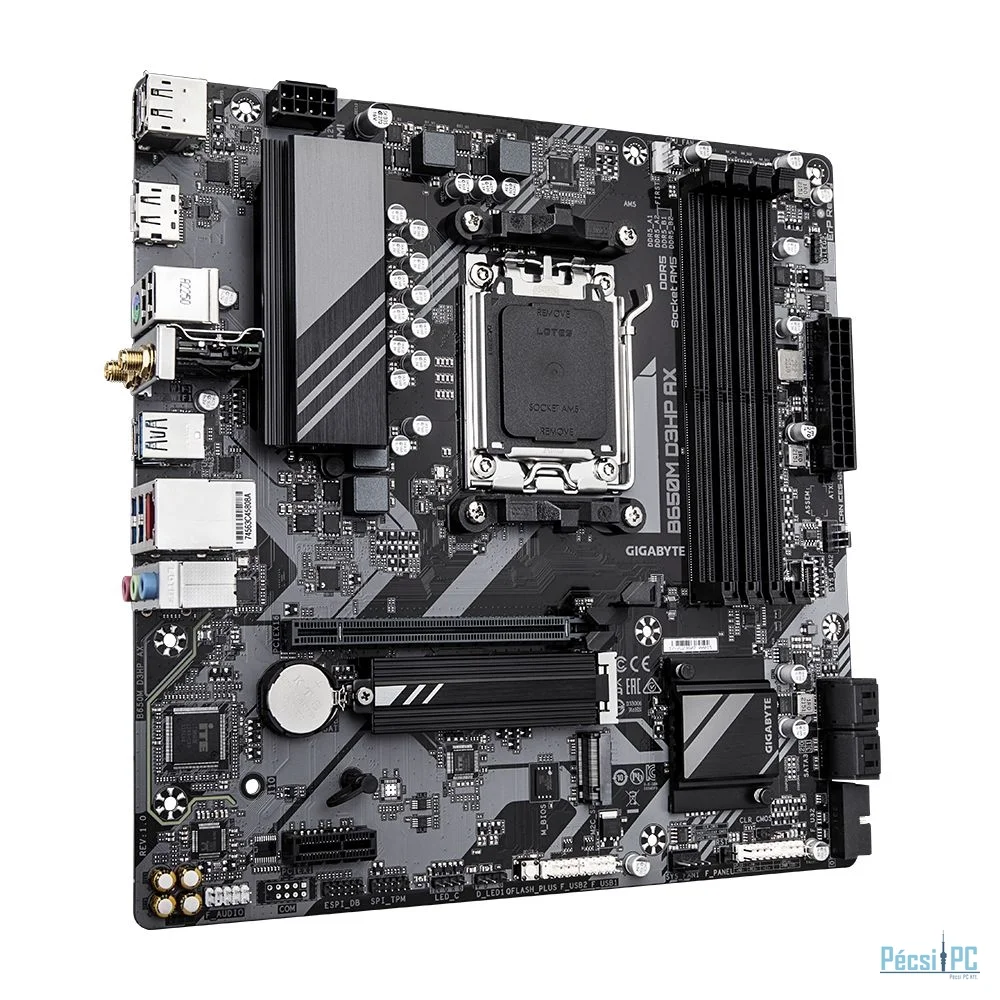 AM5, AMD B650, 4xDDR5, Max:5200MHz, Max:192GB, 1xPCIE16, 1xPCIE1, 4xSATA3, RAID, 2xUSB, 3xUSB3.2, 1xUSB3.2C, HDMI, DisplayPort, PS2:1 db, 7.1, 2.5Gb/s LAN, WiFi, Bluetooth, 2xM.2, Micro-ATX