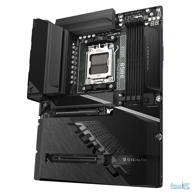 AM5, AMD B850, 4xDDR5, Max:5200MHz, Max:256GB, 2xPCIE16, 2xSATA3, RAID, 4xUSB, 6xUSB3.2, 1xUSB3.2C, HDMI, 7.1, SPDIF optikai kimenet, 5Gb/s LAN, WiFi, Bluetooth, 2xM.2, ATX, Gamer