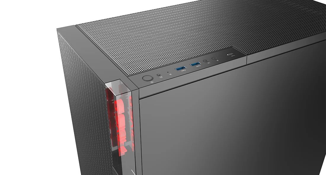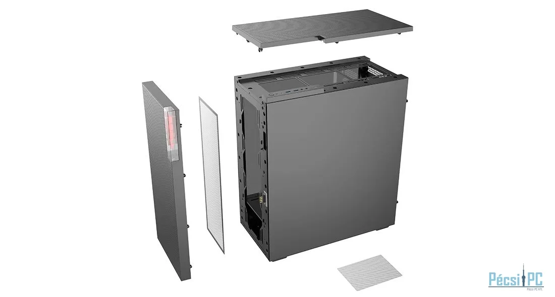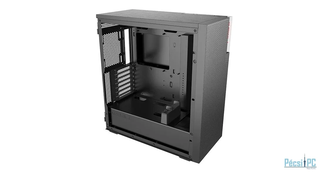 ATX, Black, 2x3,5", 2x2,5", 2xUSB3.0, 1xUSB Type-C, Audio, Táp nélkül, 504x450x220mm, Tempered glass window, Gamer