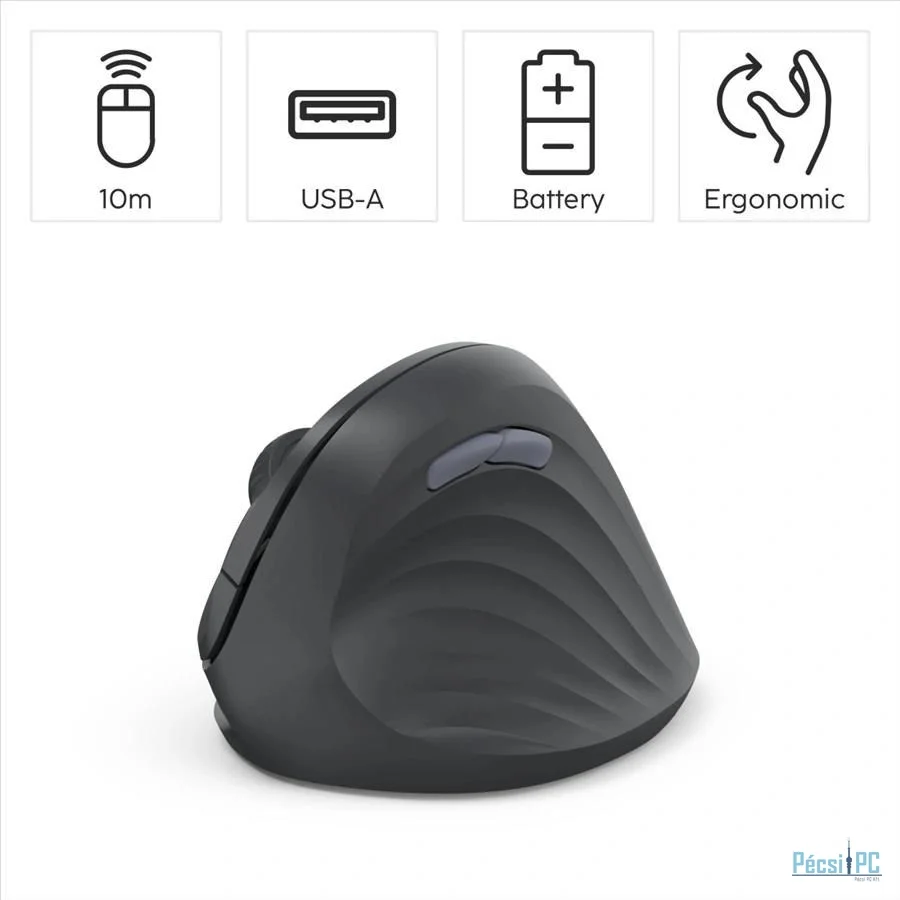 Vezeték nélküli, Wireless 2,4GHz, Optikai, 1600DPI, Black, Vertikális
