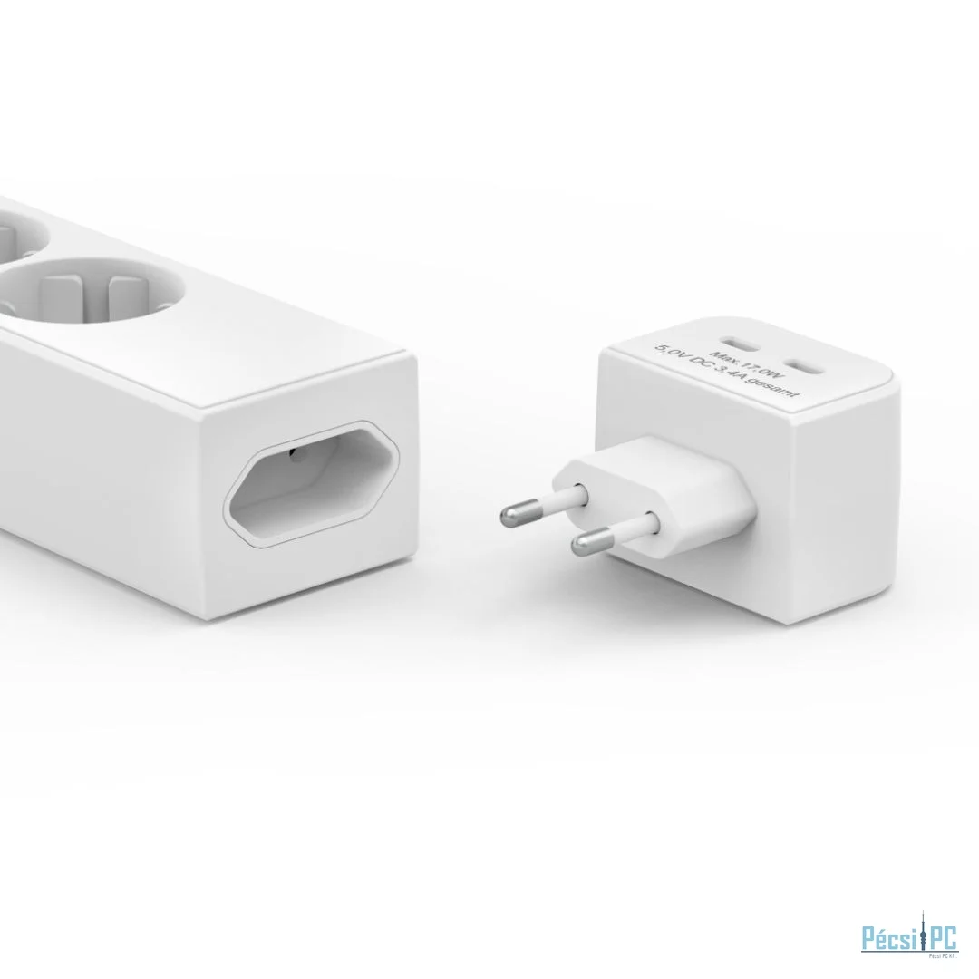 Elosztó, 5xDIN, 1,4m, Kapcsoló, USB, White