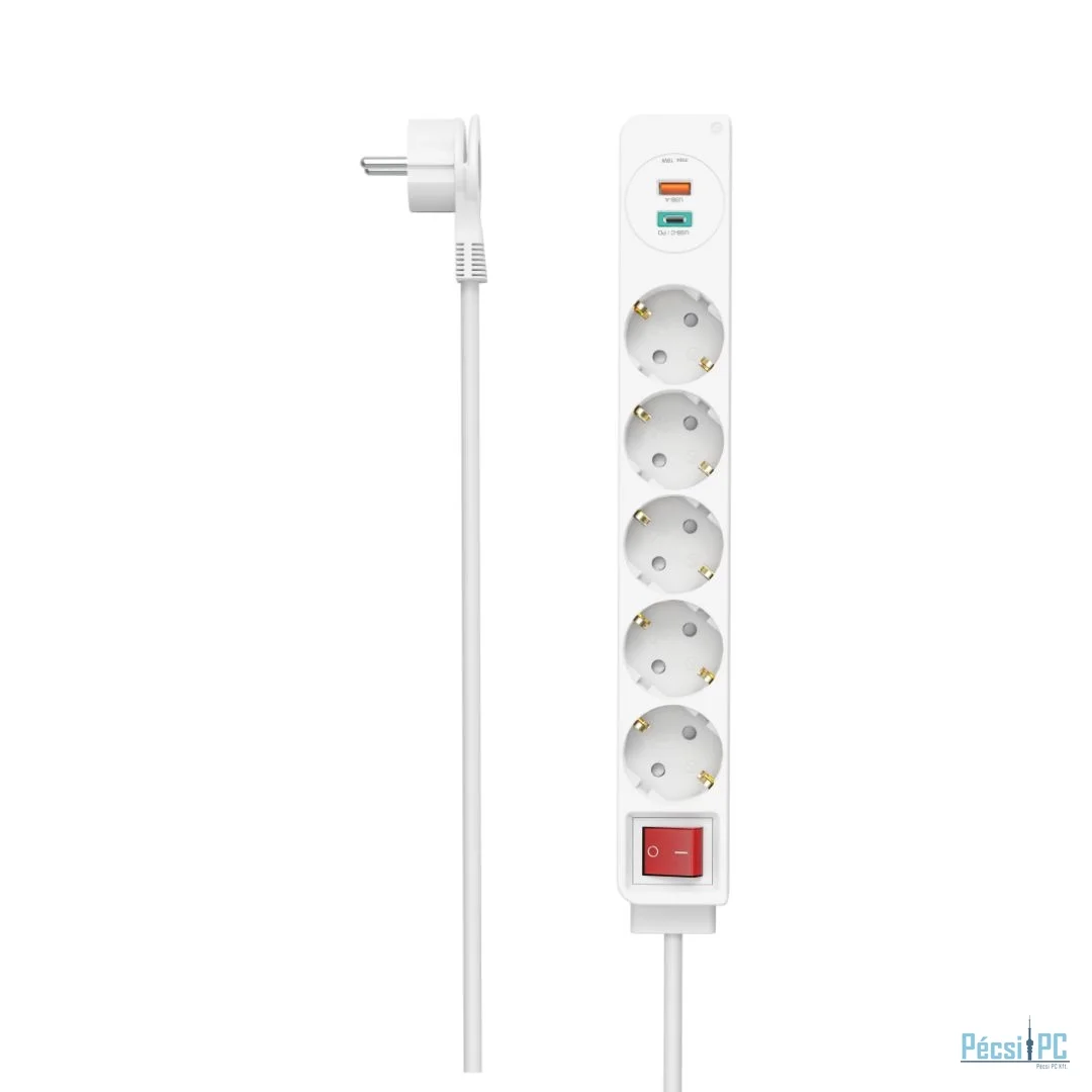 Elosztó, 5xDIN, 1,4m, Kapcsoló, USB, White