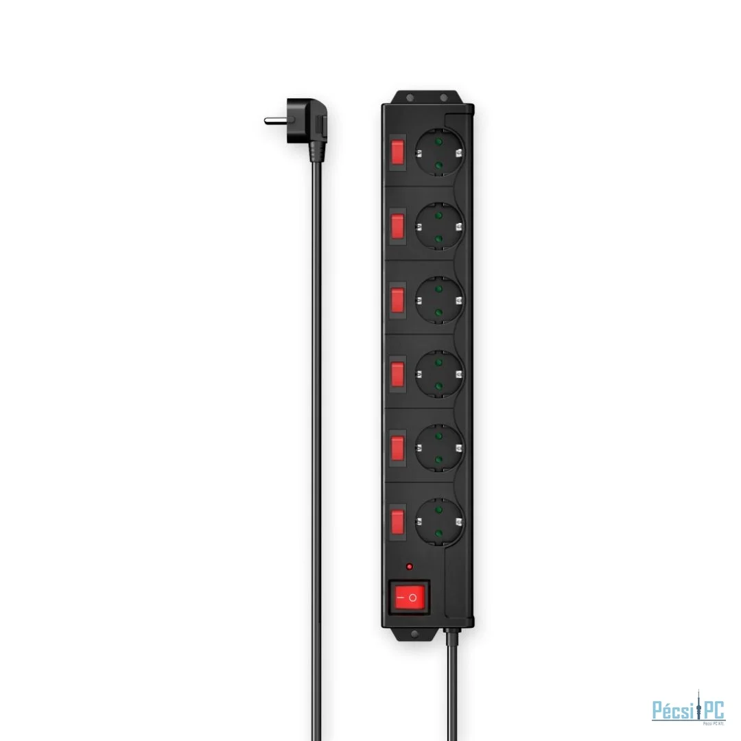 Hama Hálózati Elosztó Kapcsolóval 6DIN 1,4m Black