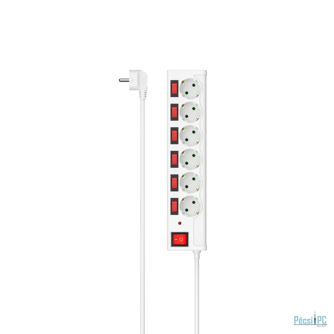 Elosztó, 6xDIN, 1,4m, Kapcsoló, White