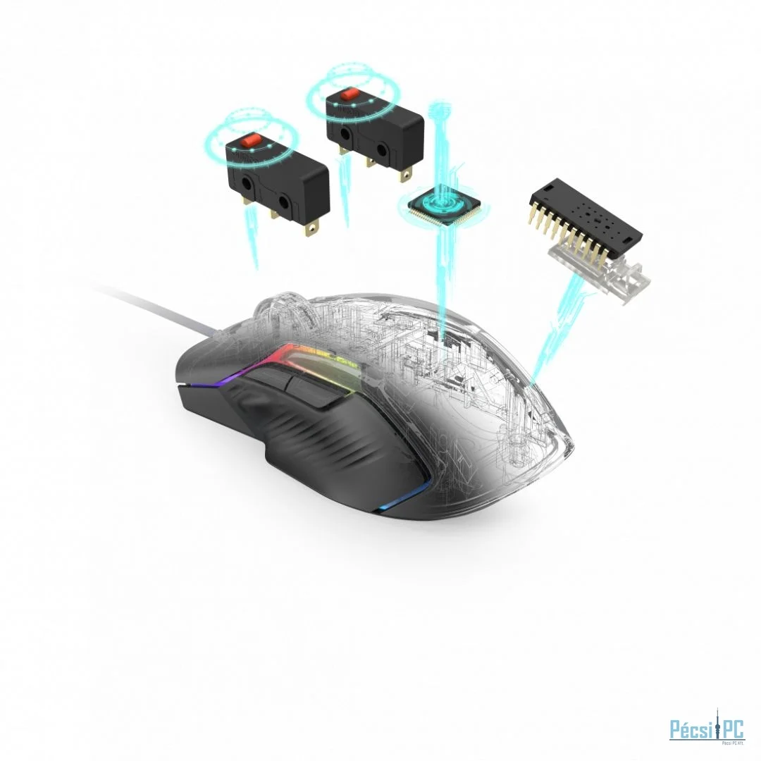 Vezetékes, USB, Optikai, 16000DPI, Black, RGB, Gamer