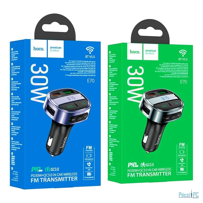 Hoco E70 Bluetooth FM-transmitter Black/Ocean Blue