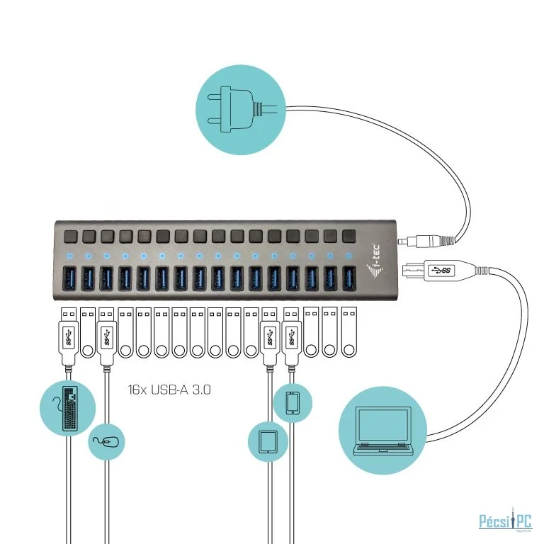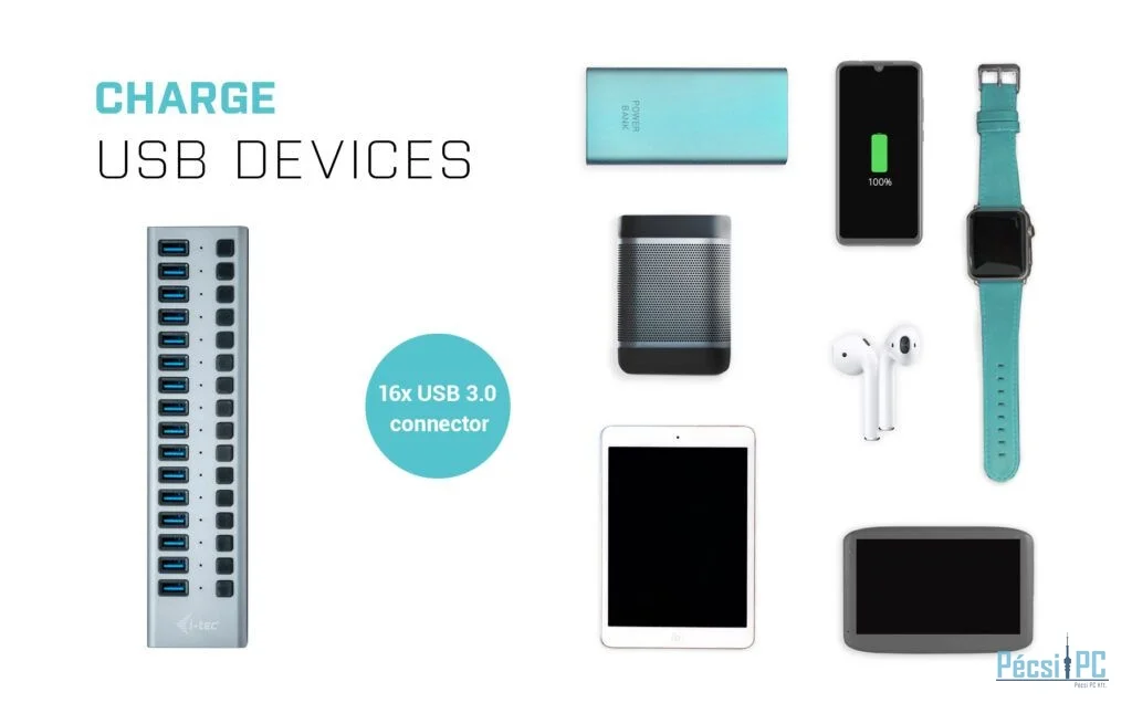 I-TEC 16 port USB 3.0 Charging Hub+Power Adapter 90W Grey