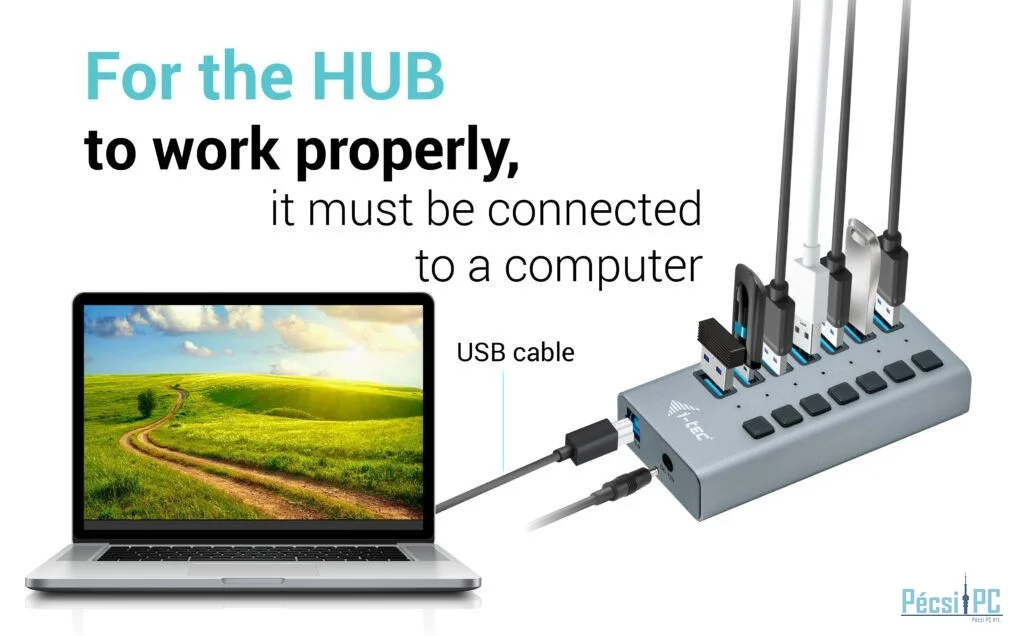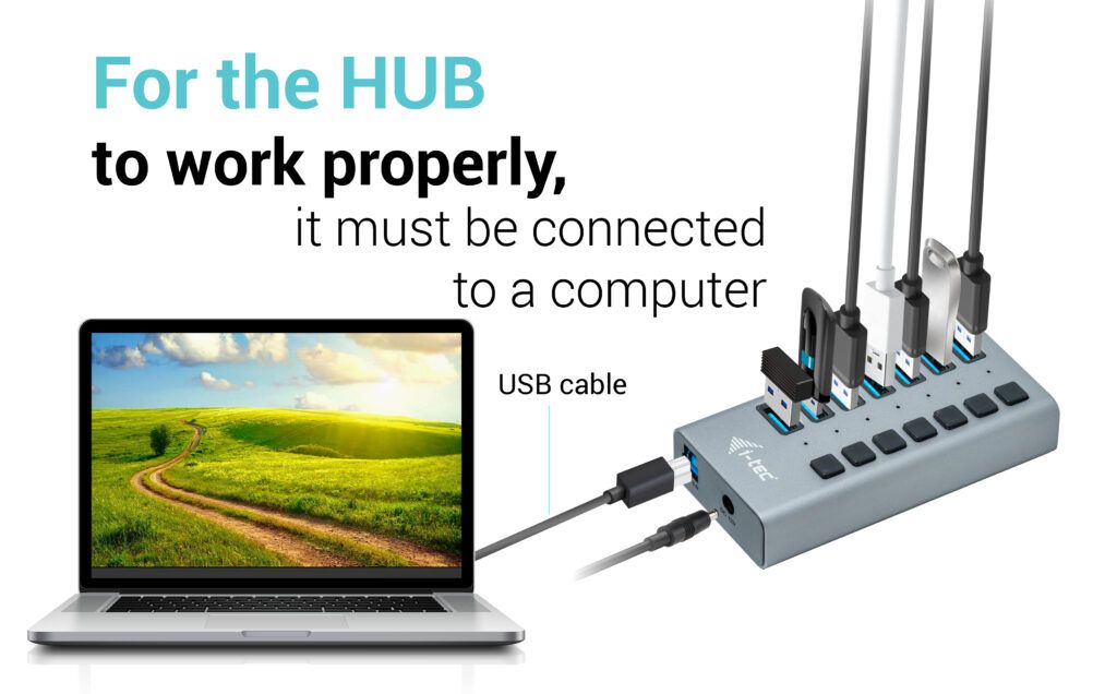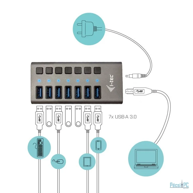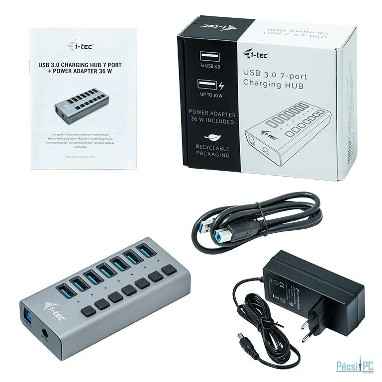 I-TEC 7 port USB 3.0 Charging Hub+Power Adapter 36W Grey