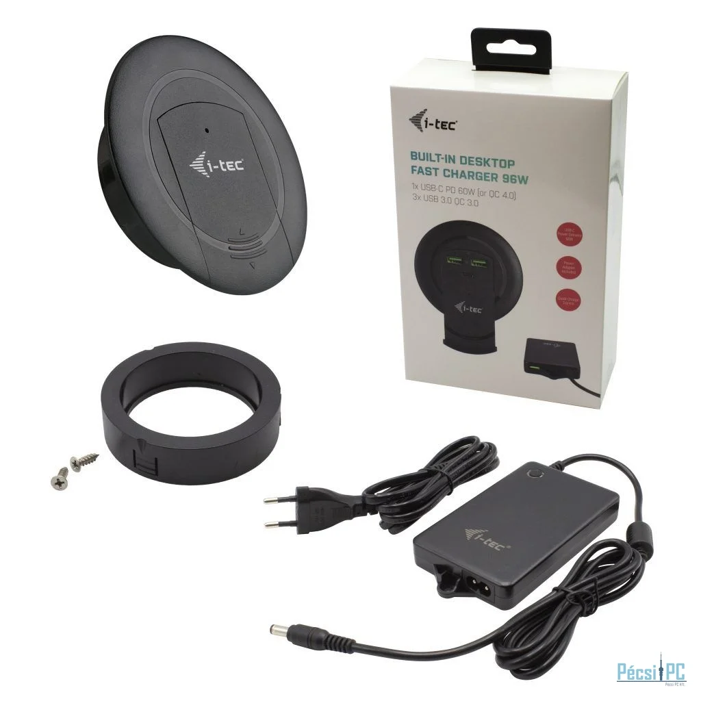Hálózati töltő, 2xUSB-A, 1xUSB-C, 5V/20V, 3A, 96W, QC, PD, Black