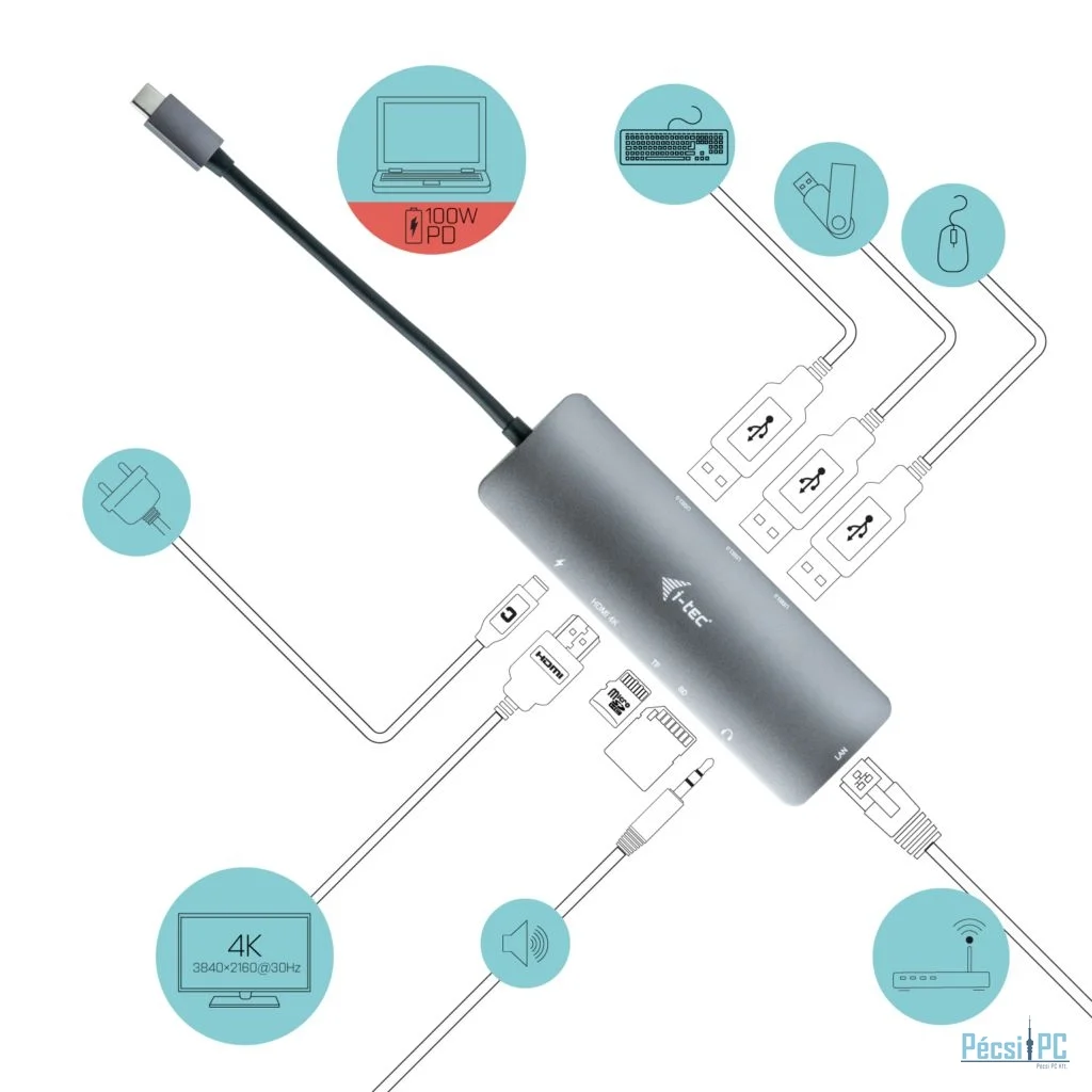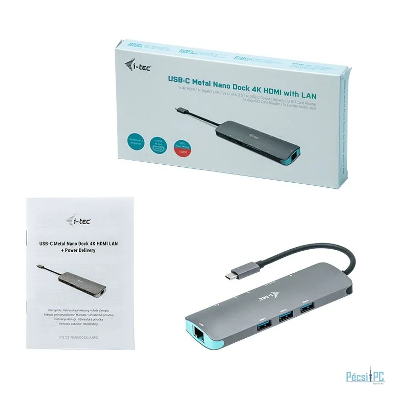 I-TEC Metal Nano Docking Station 4K HDMI LAN+Power Delivery 100W Grey