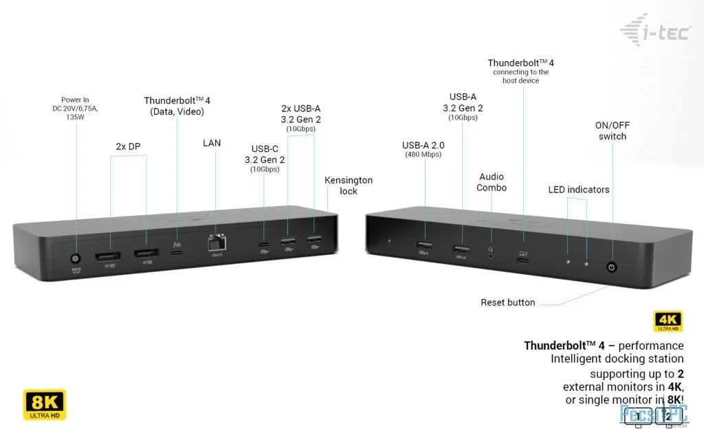 I-TEC Thunderbolt 4 Intelligent Dual Display Docking Station + Power Delivery 90W