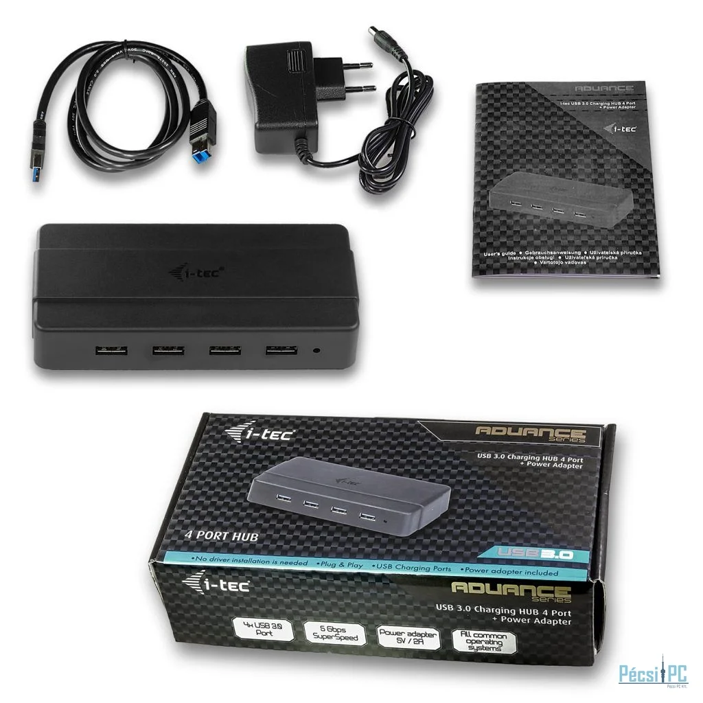 I-TEC USB 3.0 Charging HUB 4 Port + Power Adapter Black