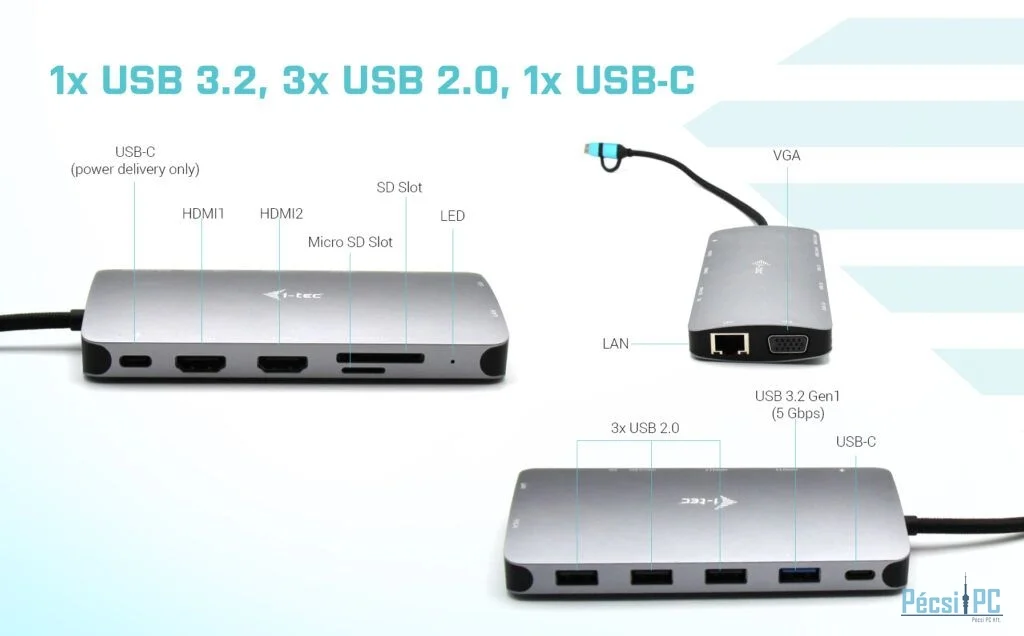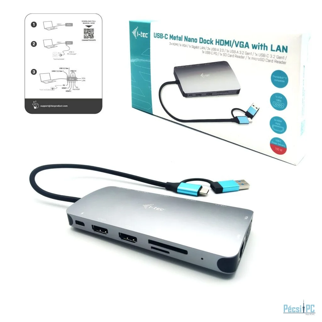 I-TEC USB 3.0 USB-C/Thunderbolt 3x Display Metal Nano Dock with LAN + Power Delivery 100 W