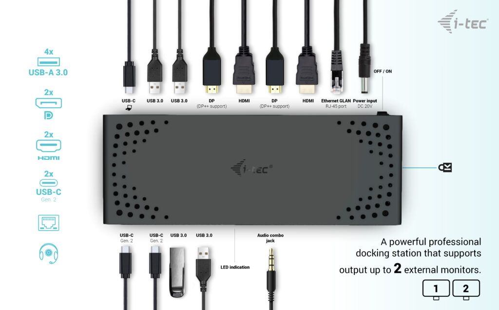 I-TEC USB 3.0/USB-C/Thunderbolt 3 Dual Display Docking Station Gen2+Power Delivery 100W Black