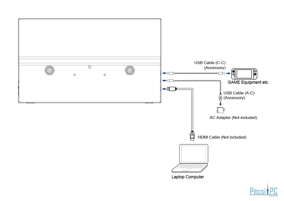 16:9, 1920x1080, 15,6", Full HD, LED, IPS, 60Hz, 3ms, 1000:1, 250cd/m2, 1xMini HDMI, 2xUSB-C, Hangszóró, Black