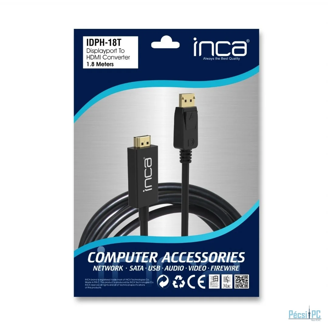 INCA IDPH-18T Displayport to HDMI Connection Cable 1,8m Black