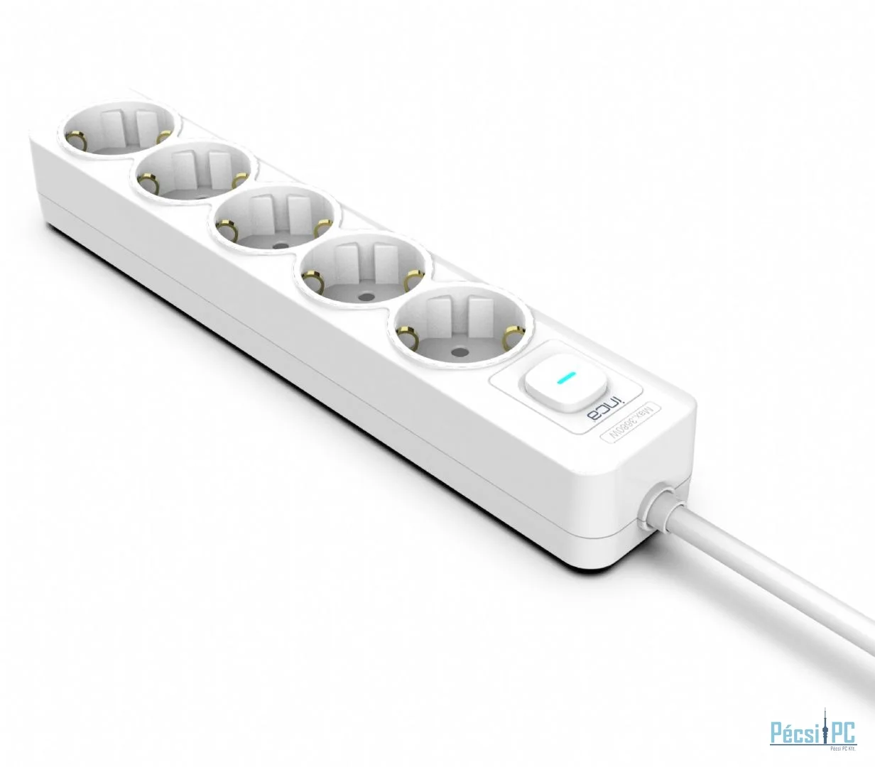 Elosztó, 5xDIN, 1,5m, Kapcsoló, White
