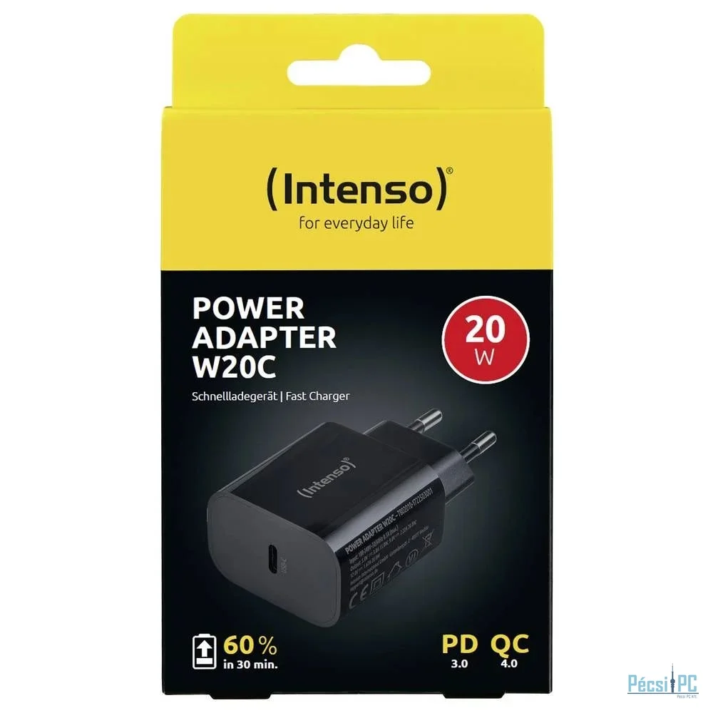 Adapter, 1xUSB-C, 5V/9V/12V, 3A, 20W, QC, PD, Black