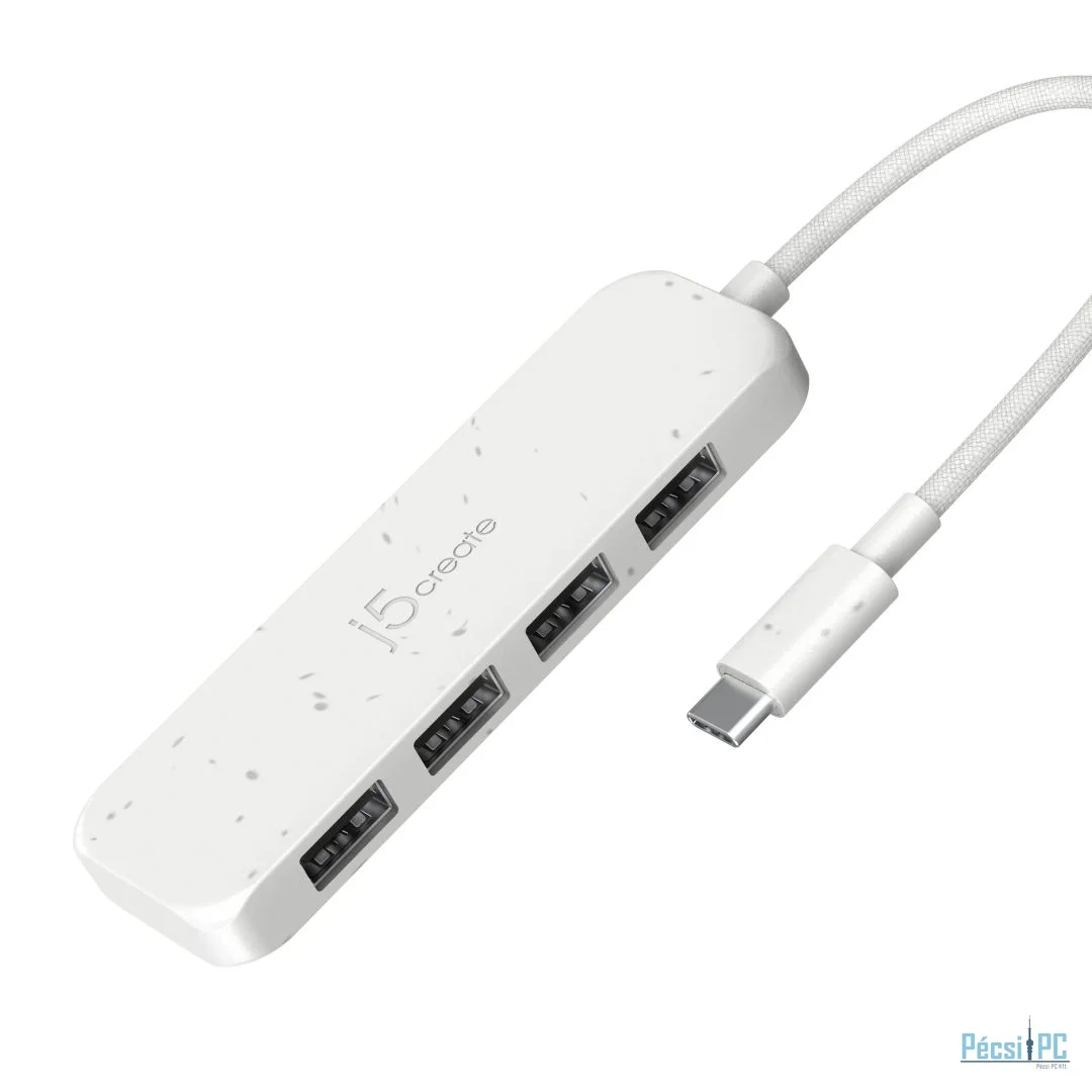 j5create Eco-Friendly USB-C to 4-Port Type-A Gen 2 Hub Pure White