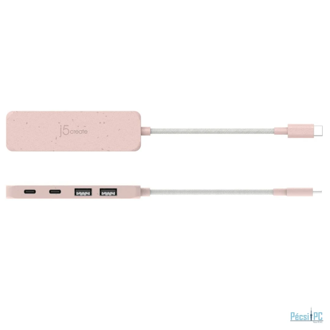 j5create Eco-Friendly USB-C to 4-Port Type-C & Type-A Gen 2 Hub Misty Rose