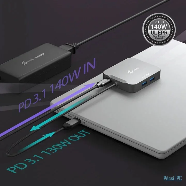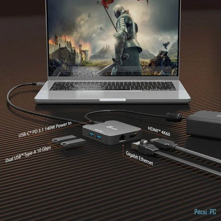 Csatlakozás USB-C, 2xUSB-A, 1xUSB-C, 1xHDMI, RJ45