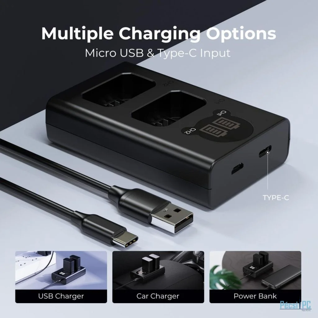 A K&F Concept hordozható dupla BC-TRW akkumulátortöltő ideális megoldás Sony fényképezőgépekhez, amelyek NP-FW50 akkumulátorokat használnak. Ez a kompakt, LCD kijelzős, USB-C csatlakozású töltő egyszerre két akkumulátor töltésére képes, miközben valós idejű visszajelzést ad a töltöttségi szintről. Tökéletes választás otthoni használatra, utazáshoz vagy terepi munkákhoz.