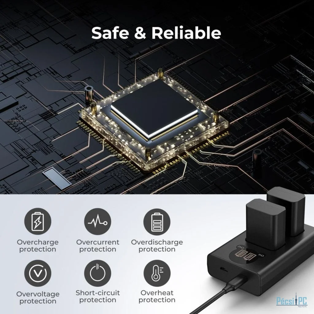 Ez a töltő tökéletes társ a fotós táskában, hiszen gyors, biztonságos és kényelmes megoldást kínál a Sony NP-FW50 akkumulátorok egyidejű töltésére - bárhol, bármikor.