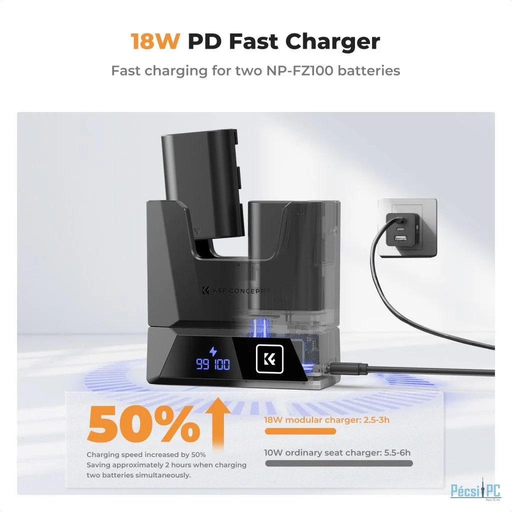 A K&F Concept hordozható moduláris dupla töltő ideális választás profi és hobbi fotósok számára, akik Canon LP-E6NH akkumulátorokat használnak. Praktikus, helytakarékos kialakítása, gyors töltési funkciója és intelligens kijelzője révén egyszerre biztosítja a hatékonyságot és a kényelmet.