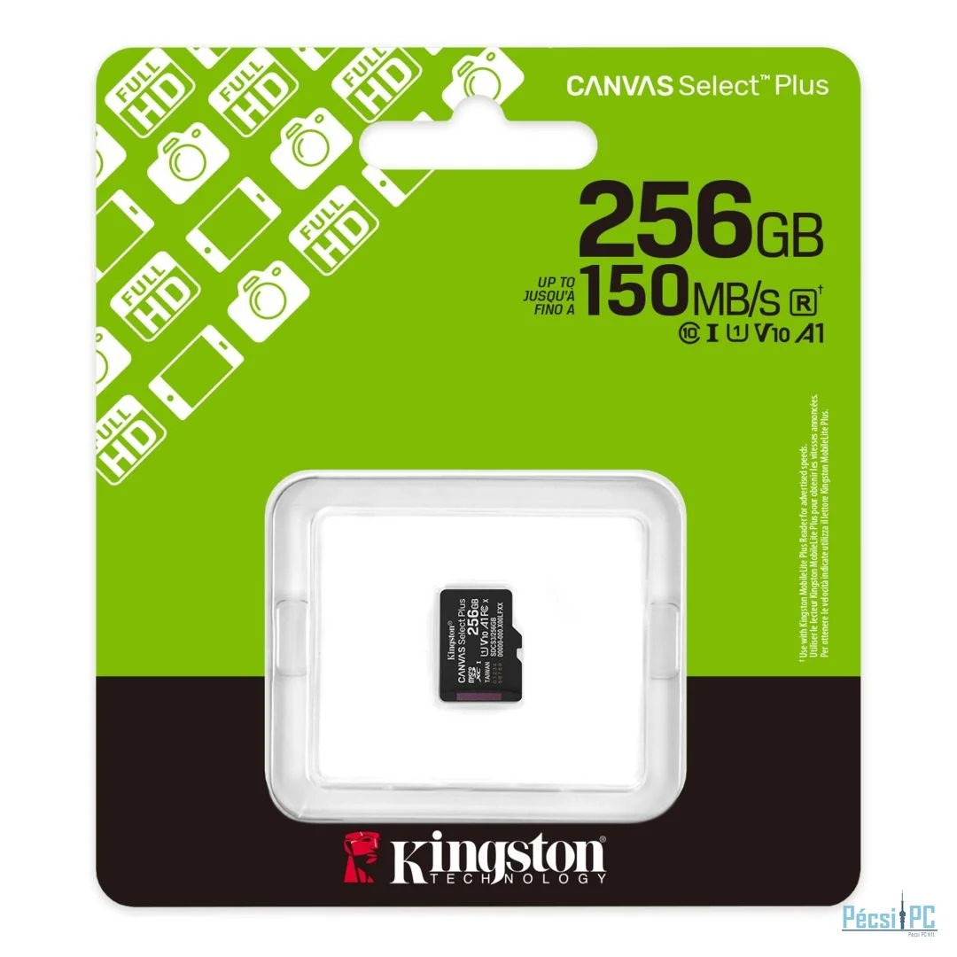 Kingston 256GB microSDXC Canvas Select Plus Gen3 Class 10 UHS-1 A1 V10 adapter nélkül