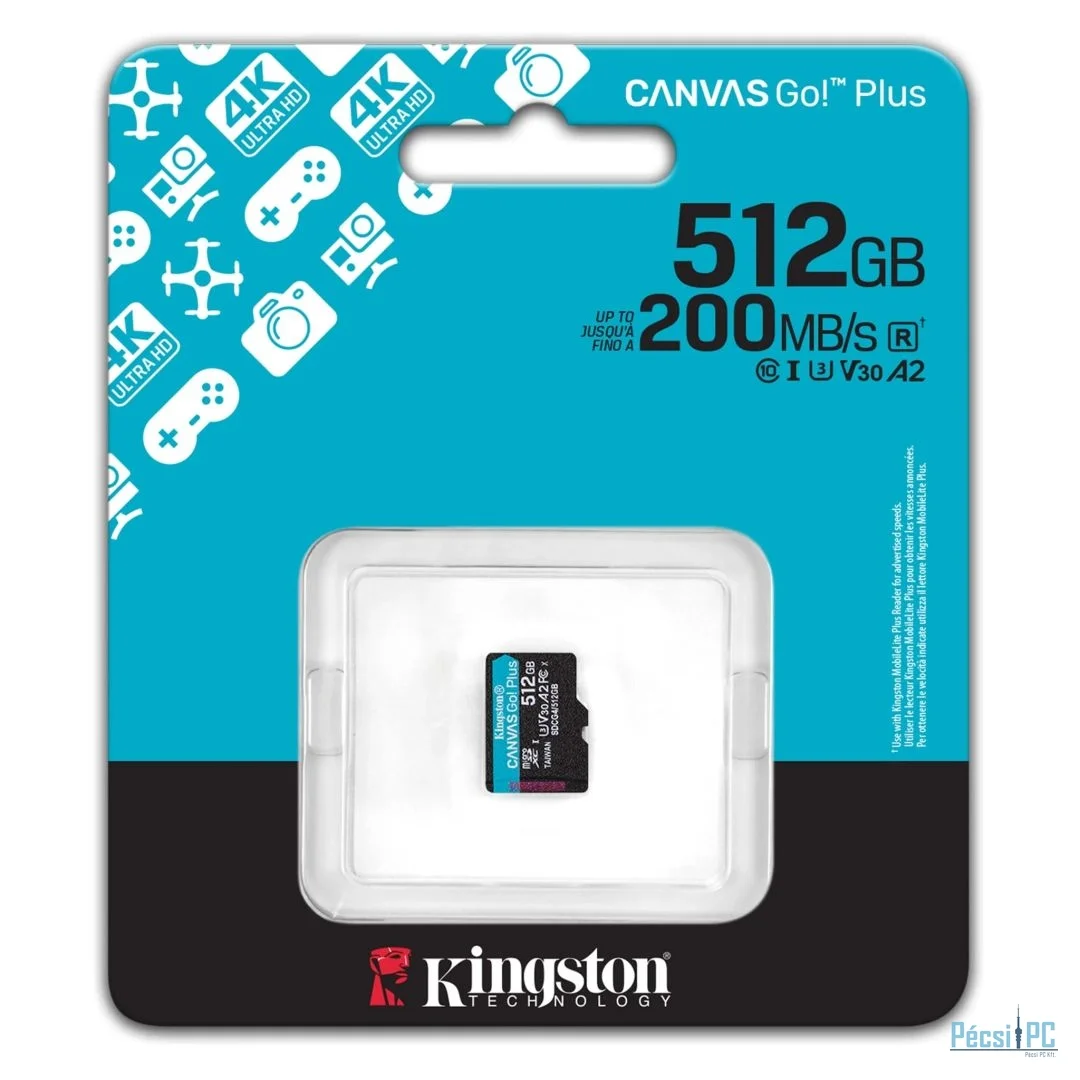 Kingston 512GB microSDXC Canvas Go Plus Gen4 200R Class10 U3 A2 adapter nélküli