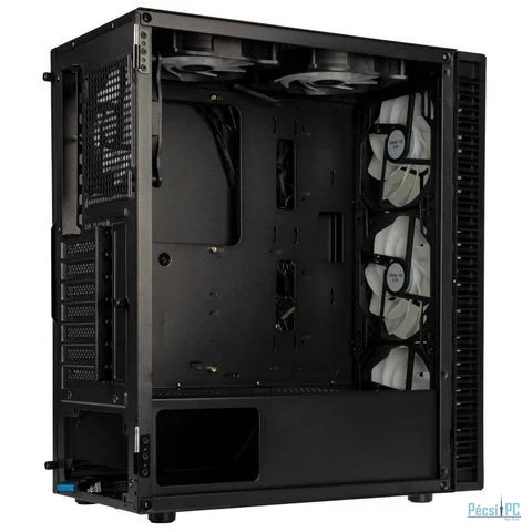 ATX, Black, 2x3,5", 2x2,5", 2xUSB2.0, 1xUSB3.0, Audio, Táp nélkül, 390x200x449mm, Ventilátor:3x14cm, 3x12cm, Tempered glass window, RGB, Gamer
