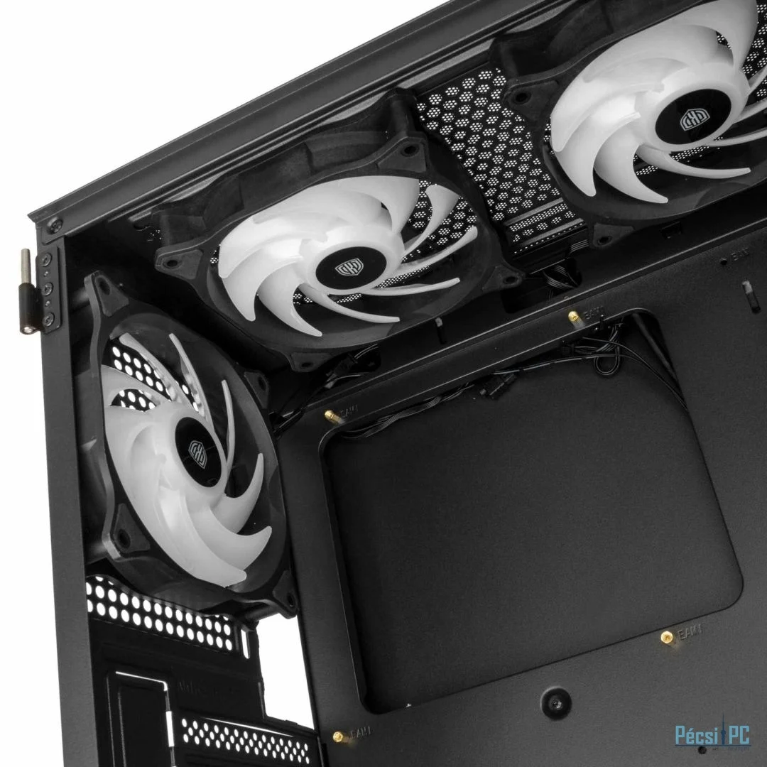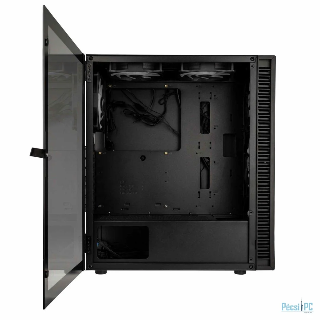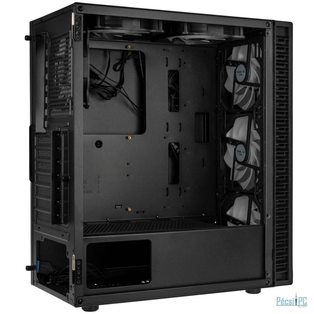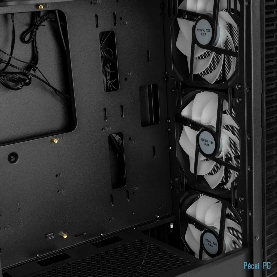 ATX, Black, 2x3,5", 2x2,5", 2xUSB2.0, 1xUSB3.0, Audio, Táp nélkül, 390x200x449mm, Ventilátor:3x14cm, 3x12cm, Tempered glass window, RGB, Gamer