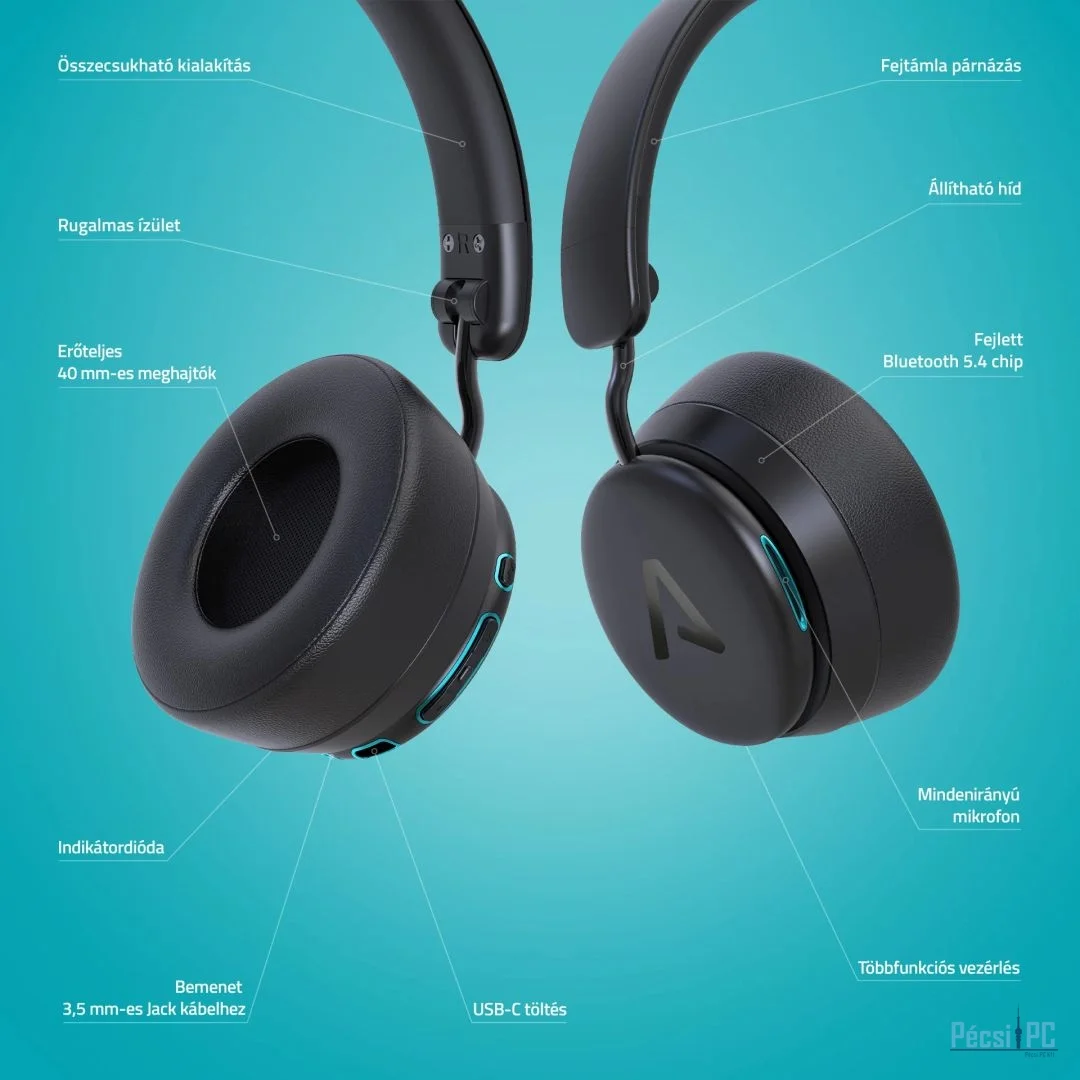 A könnyű kialakítás és a kényelmes fülpárnák maximális kényelmet biztosítanakreggeltől estig. A fejhallgató kényelmesen illeszkedik anélkül, hogy nyomná vagy zavarná a hosszúzenehallgatás során. És mi még? Könnyen összecsukhatod őket, és bárhová magaddal viheted. A stabilBluetooth 5.4-nek köszönhetően mindig megbízható kapcsolat van kéznél, agombokat akár vakon is használhatod, a mikrofon pedig minden hívássorán tiszta átvitelt biztosít.