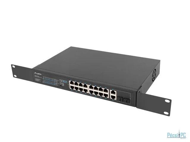 18xLAN port, LAN 10/100/1000 Mbps, 18xGigabit LAN, PoE port 16, PoE osztály PoE+, SFP port 2, Fémház, Teljesítmény 150W, Uplink 1 Gbps