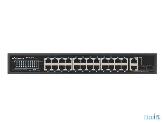 26xLAN port, LAN 10/100/1000 Mbps, 26xGigabit LAN, PoE port 24, PoE osztály PoE+, SFP port 2, Fémház, Uplink 1 Gbps