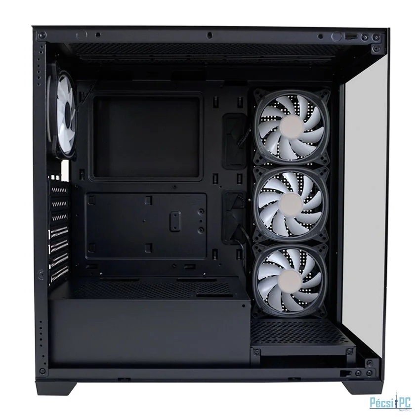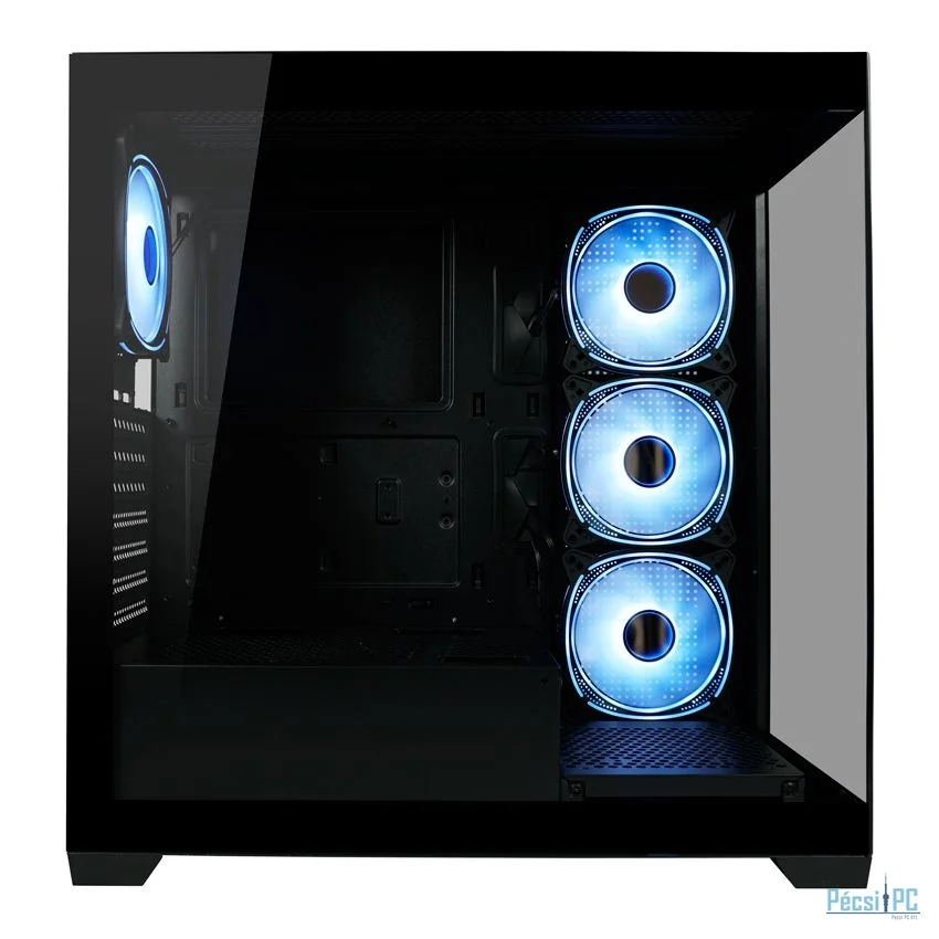 ATX, Black, 2x3,5", 1x2,5", 2xUSB3.2, 1xUSB Type-C, Audio, Táp nélkül, 455x220x445mm, Ventilátor:4x12cm, Tempered glass window, RGB, Gamer