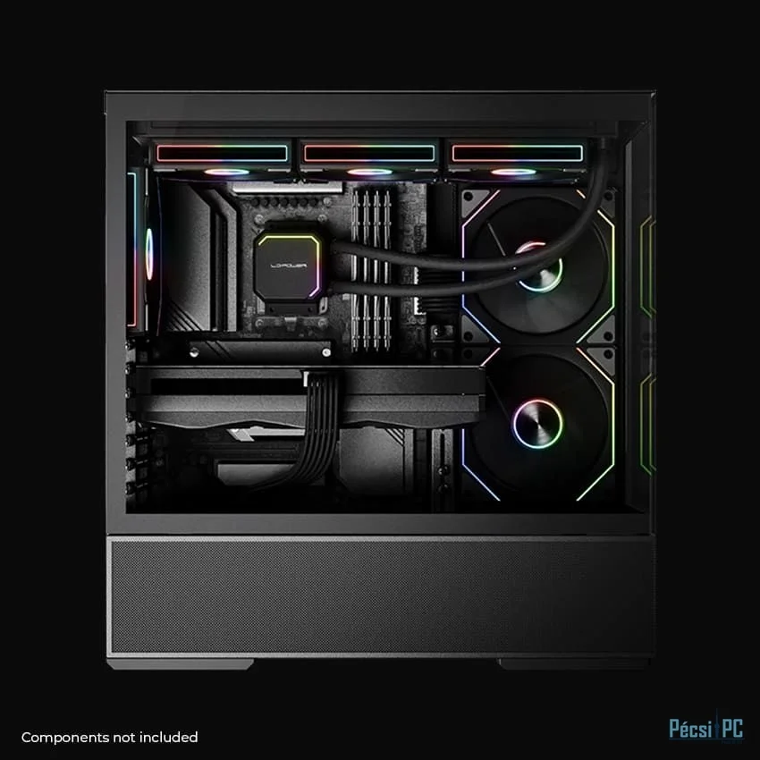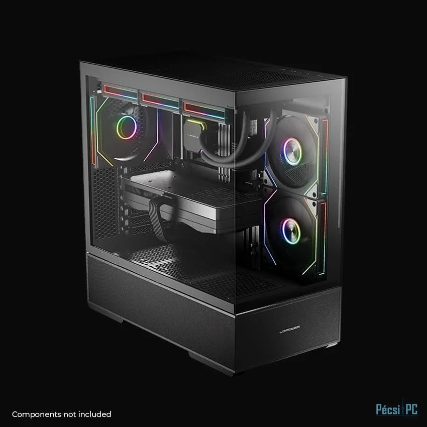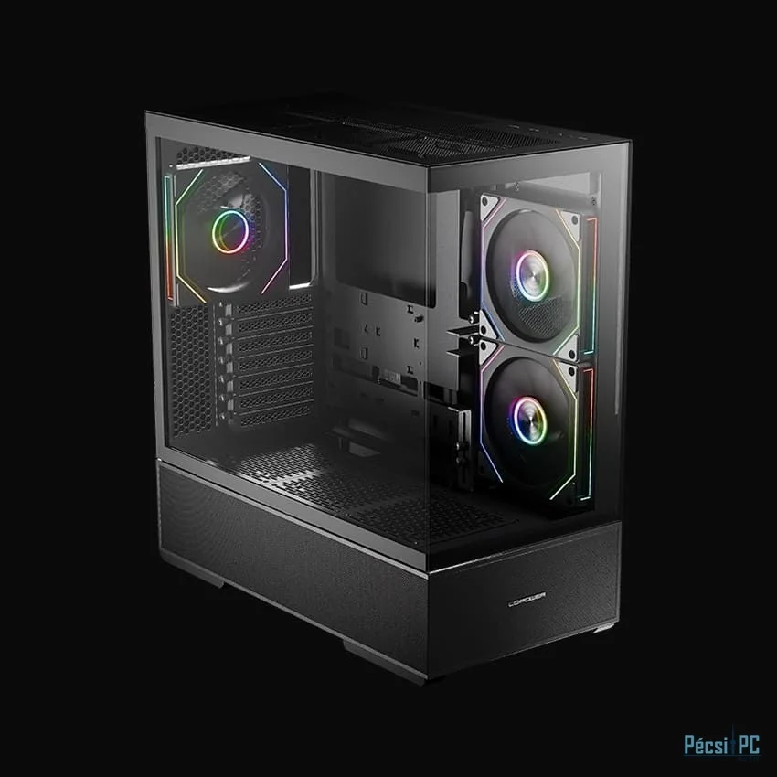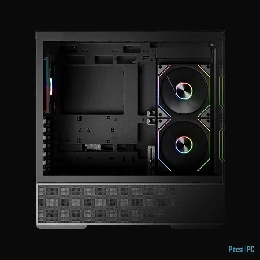 ATX, Black, 2x3,5", 2x2,5", 2xUSB3.2, 1xUSB Type-C, Audio, Táp nélkül, 472x455x235mm, Ventilátor:2x14cm, 1x12cm, Tempered glass window, RGB, Gamer