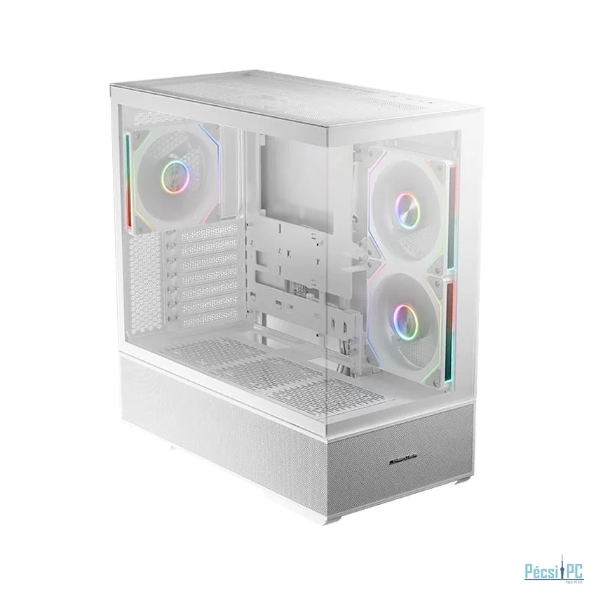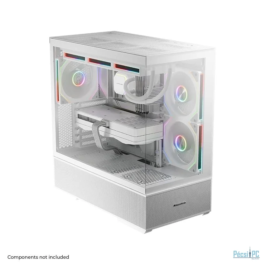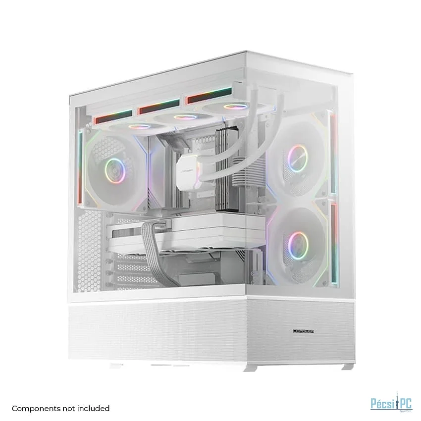 ATX, White, 2x3,5", 2x2,5", 2xUSB3.2, 1xUSB Type-C, Audio, Táp nélkül, 472x455x235mm, Ventilátor:2x14cm, 1x12cm, Tempered glass window, RGB, Gamer