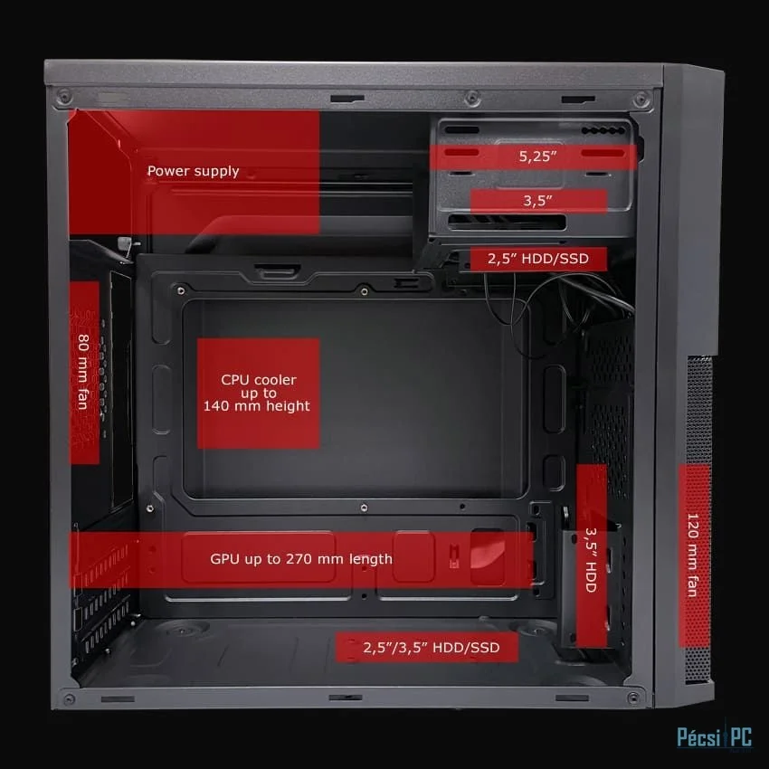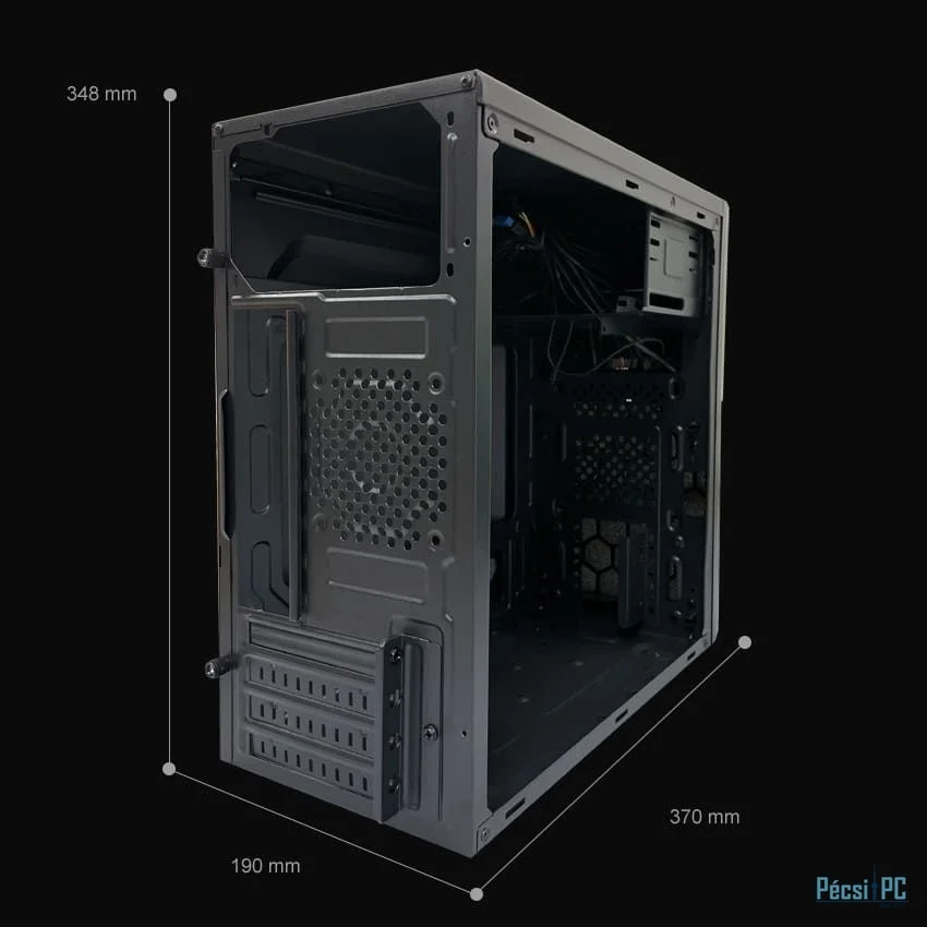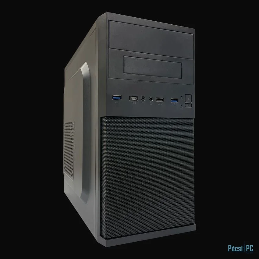 microATX, Black, 1x5,25", 3x3,5", 2x2,5", 1xUSB2.0, 2xUSB3.2, 1xUSB Type-C, Audio, Táp nélkül, 348x190x370mm