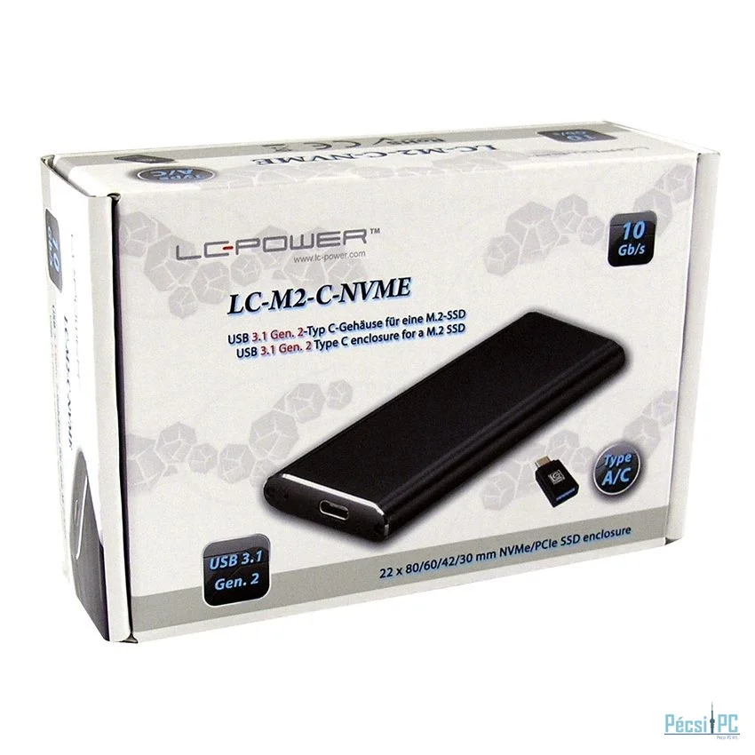 LC Power LC-M2-C-NVME USB 3.1 Gen. 2 Type-C M.2 SSD Enclosure
