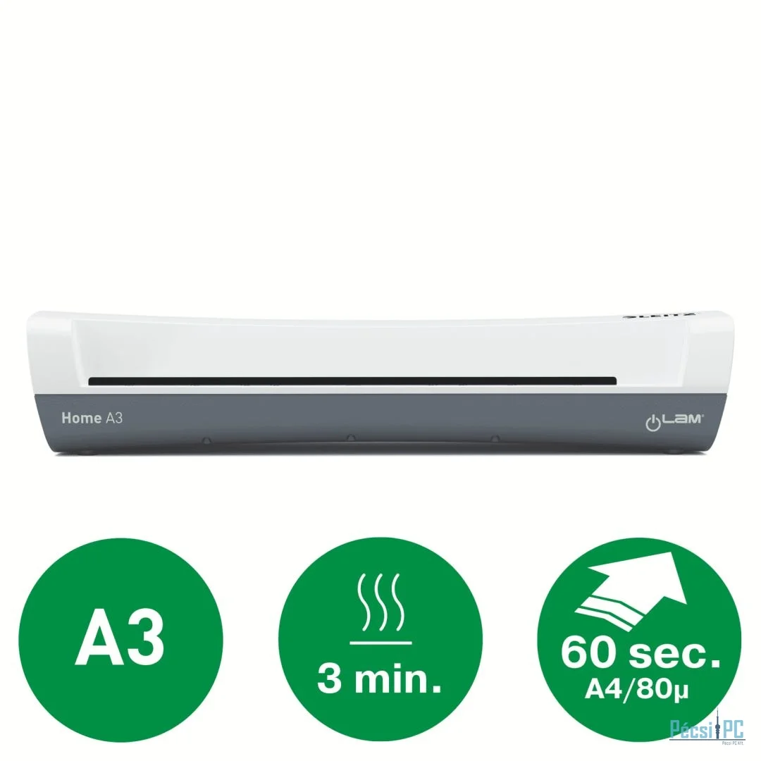Laminálógép, A3, Meleg laminálás, 320mm, 310mm/perc, 80-125mikron, 3perc, 110x90x441mm, White